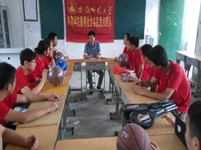 7月4日,实践团队冒着酷暑奔赴实践目的地—安徽凤阳大庙中学,大庙中学教导主任杨老师代表学校亲切接见了团队队员,并举行双方交流会。会议上,实践团队对大庙中学进行了爱心捐助,随后杨主任介绍了当地学校的实际情况以便团队教学工作和实践活动的开展。