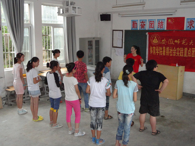 7月5日,实践活动的第二天,虽意外地下起了雨,但参加此次夏令营的同学们冒雨早早就赶到学校,欢迎这些来自大学的新老师。根据教学计划的安排,第一讲是由肖浩主持讲解的安全知识讲座,包括食品安全,交通安全,网络安全等。在讲座的互动过程中,学生们积极踊跃,争相回答问题。第二项教学活动是体育舞蹈教学,在杨天娥的带领与指导下,同学们都学得很认真,课堂气氛十分活跃。同时开展的还有篮球教学,吴欣欣向同学们讲解了篮球的基本知识,因为老师的投入,同学们也都热情高涨,男同学都围在篮球周围,跃跃一试。在教学课间队员还带学生们做游戏,调动同学们积极性,增强团队合作,激发合作意识,加强友谊交流。
