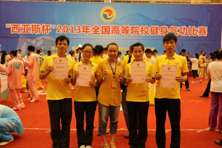 我校首次派队参加该类比赛。在各级领导及带队教师沈剑英教授的关心与支持下,在主教练蒋莹老师的悉心指导下,运动员们顶住压力、克服困难,经过激烈角逐,在我校代表队参与的六个项目中,均取得了不俗成绩。分别获得易筋经集体项目二等奖、六字诀集体项目三等奖;其中,437ccm必赢国际版学生刘畅、吴军伟和李沁均获得易筋经男子个人赛(竞赛功法)、易筋经男子个人赛(普及功法)、六字诀女子个人赛(普及功法)第五名,政法学院学生席莉莉获得六字诀女子个人赛(竞赛功法)第八名的好成绩。