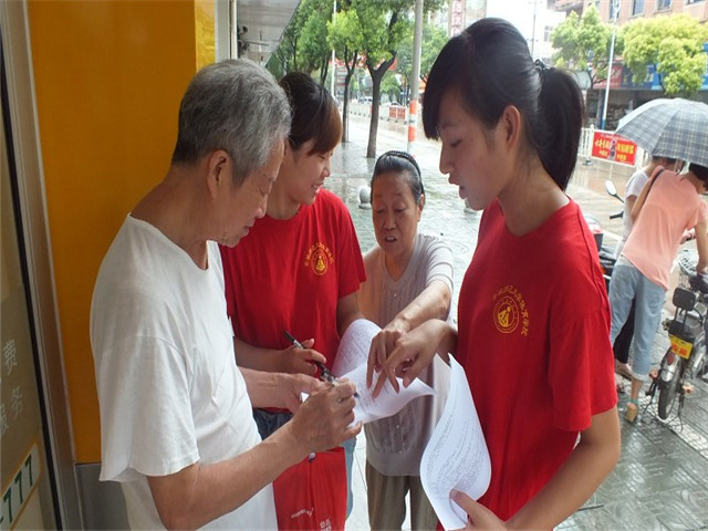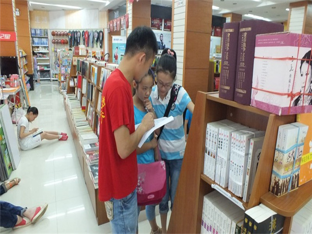 迎着蒙蒙细雨,赴当涂实践团队。到达目的地之后,大家各司其职,相互合作,有条不紊地进行调查:有的采访行人,有的记录笔记。大家都做得一丝不苟,认真细致。调查完步行街后,大家又步行前往新华书店进行了调查。