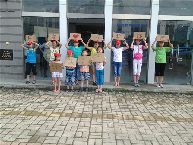 践行环保、永葆“青春”—尽展地球之风采,我们还与留守儿童一起进行环保宣传,呼吁人们从身边做起,保护资源、低碳生活、减少有害气体及污物排放。这次的“低碳环保,爱护我家”的宣传活动形式很特殊,因为我们将和孩子们一起做这么有意义的活动。这样不仅增强了人们爱护家园的意识,而且教会孩子将“低碳环保,从自我做起“的理念与实践具体的相结合,使孩子能够树立正确的环保意识观,我们遵循“废物—利用—循环”理念来制作海报宣传,收集别人丢掉的纸盒子,然后做成海报和“横幅”。来代替以往的以横幅的形式宣传环保,因为用过的横幅以后也不能够回收利用了,这样本身就是一种浪费资源的行为。我们坚持走群众路线,让村村的人们在我们和孩子的带动下,也有环保的意识 “环保之行”的活动,保护好自己身边的环境,那一群孩子们,踊跃的参加了我们的活动,虽然很热,孩子们积极向上的热情也没有退缩,迈开大步向前走。