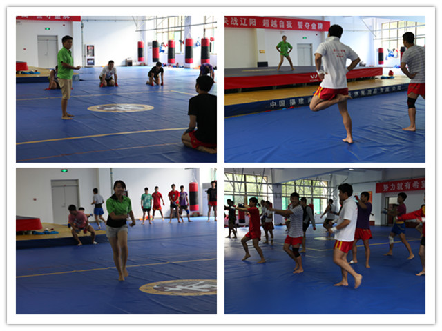 在对综合训练馆、击剑馆、散打馆等进行参观以后,队员们首先在散打馆带领运动员们进行热身和放松表演。2012级运动训练专业的谢恩慧同学带领运动员们热身,2011级体育表演专业的武克媛同学们带领运动员们学习健美操,伴随着动感的音乐,运动员们迅速和实践队员们打成一片。在运动员们休息期间,武克媛同学为他们表演了一段拉丁舞,训练馆内掌声一片。运动员们纷纷表示,没有接触过舞蹈的他们很喜欢这样的放松方式,并表达了对队员们的谢意。
