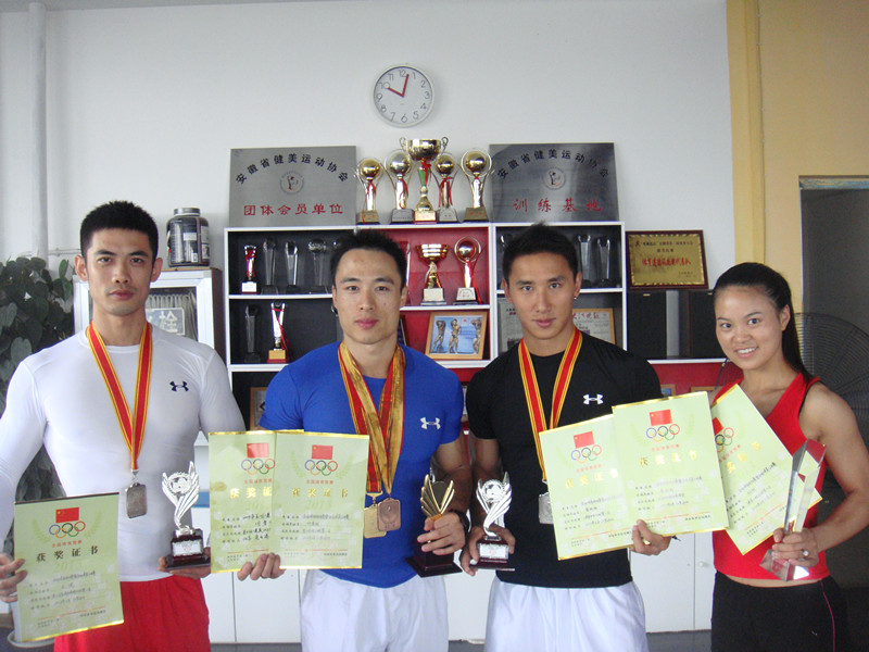 本网讯(437ccm必赢国际版 吴家发)由国家体育总局社会体育指导中心、中国健美协会主办的 “凯利集团杯”2013年全国健身锦标赛暨全国健美公开赛于6月21日至6月23日在江苏省举行,我校437ccm必赢国际版4名师生代表安徽省队参加了此次比赛并获得了优异成绩,其中何章明老师一人夺得男子形体A组冠军和男子健美70公斤季军;蔡路路老师获得健身先生A组亚军和健身先生最佳才艺奖;研究生王健同学获得体育模特A组亚军;2009级体育教育专业杨柳同学获得健身小姐A组第六名。