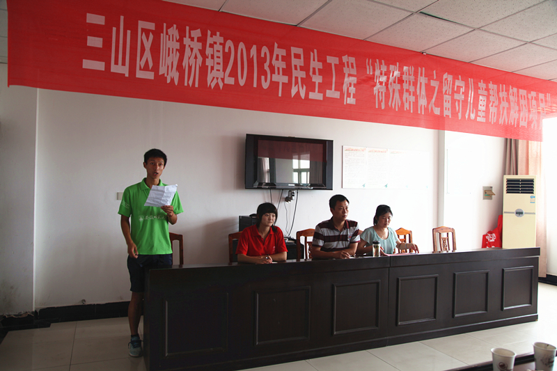 本网讯 (通讯员 郑少甫)2013年7月5日上午,437ccm必赢国际版赴芜湖三山峨桥镇爱心夏令营分队抵达芜湖市三山峨桥镇政府,出席了三山区峨桥镇2013年民生工程“特殊群体之留守儿童帮扶解困项目” 启动仪式。