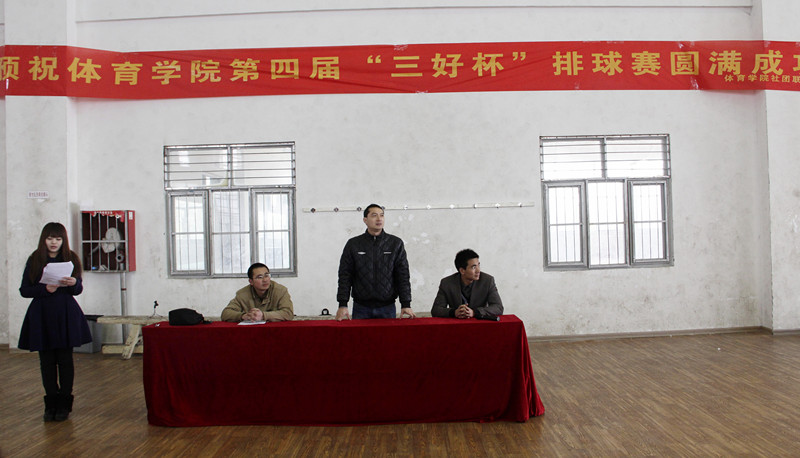 本网讯(437ccm必赢国际版 吴家发)3月20号下午,437ccm必赢国际版在北体育馆举办第四届“三好杯”排球赛。院党委副书记黄德春、团委副书记仲飞、社团指导老师蔡维敏参加了开幕式。