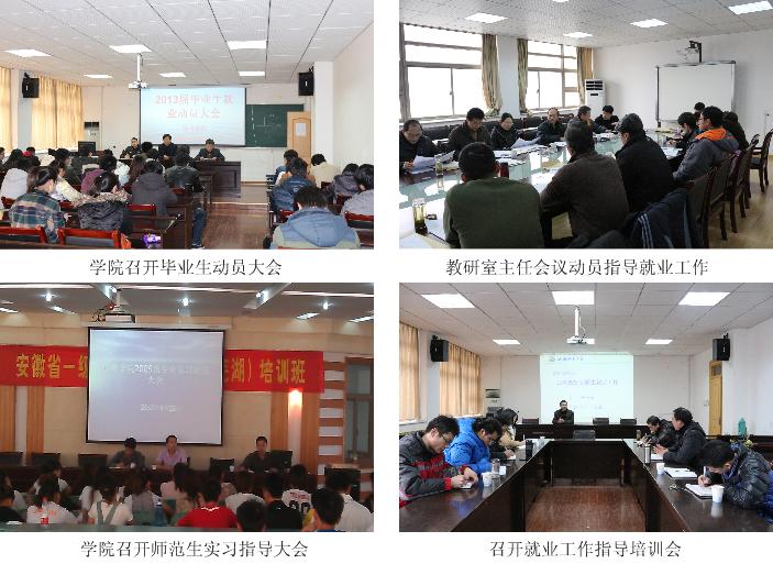 明确责任,毕业生就业工作有保障 学院先后召开全院教职工大会、党政联席会、毕业班辅导员会议,及时研究2013届毕业生就业形势,精心制定相应工作方案,周密部署相关工作,层层传达落实学校工作要求,全面动员教职工积极关心毕业生就业工作,全面动员毕业生主动适应形势要求,将毕业生就业工作作为学院党政“一把手”工程狠抓落实。大力发挥导师、辅导员、专业教师的力量,鼓励他们积极联系重点单位,推荐毕业生就业,形成就业工作全员化的良好局面。