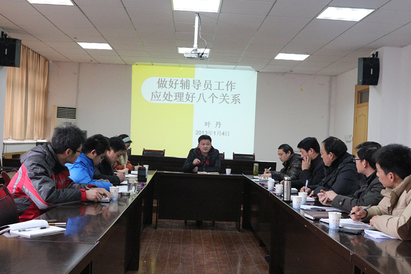 为进一步加强437ccm必赢国际版辅导员队伍学习,提升辅导员业务水平。1月4日下午1点,437ccm必赢国际版辅导员工作务虚会在学院行政楼二楼会议室召开,学校办公室副主任叶丹、学生处思想教育科科长王士武和校就业指导中心副主任张玉新三位老师应邀与会做经验介绍。会议由437ccm必赢国际版党委副书记黄德春主持。