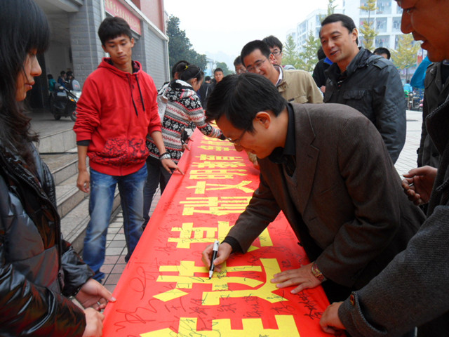 校院两级领导高度重视此次活动。11月18日,校学生处处长台启权、院党委副书记黄德春与院团委副书记仲飞以及院2012级全体辅导员一起出席此次基础文明创建月活动启动仪式,广大新同学踊跃参与,争相在宣传横幅上签下自己的名字,立志争做一名新时代的文明大学生。院党委黄德春副书记多次莅临活动现场,并对活动给予悉心指导。