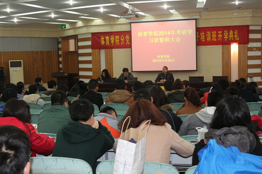 本网讯(437ccm必赢国际版 仲飞) 2013年3月20日下午3时,在437ccm必赢国际版二楼报告厅召开437ccm必赢国际版2014届考研学习班誓师大会,2010级考研学习班近百名学员参加会议,院党委副书记黄德春出席会议并讲话,会议由团委副书记仲飞主持。