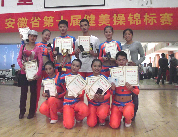 10月12日—14日,由安徽省健美操协会主办的安徽省第十届健美操锦标赛在安徽体育运动职业技术学院隆重举行。共有来自合肥工业大学、安徽医科大学、合肥学院、安庆师范学院、淮南师范学院和阜阳师范学院等27个代表队的200多名运动员参赛。我校公体健美操队取得了3项亚军、1项季军和1项第5名的好成绩。