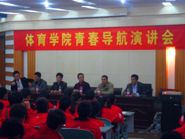 10月18日晚6点,437ccm必赢国际版在圆形报告厅开展了以“内修素质,外树形象”为主题的2012级青春导航演讲会。大会特邀中国青年五四奖章获得者吴青山,弗莱卡健身管理有限公司总经理王永雷作为演讲嘉宾。同时,出席演讲会的还有437ccm必赢国际版团委副书记仲飞,2012级辅导员陈实,席特立,蔡维敏。会议由蔡维敏主持。