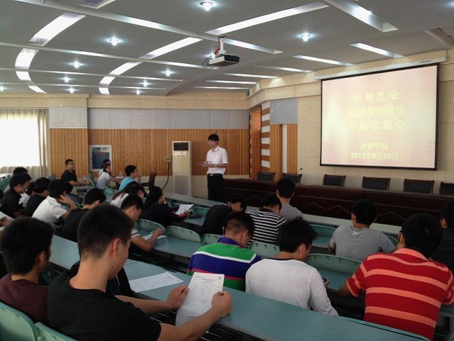 黄德春首先为毕业生介绍了来学院招聘的伊利集团人事部的领导,并且对前来应聘的毕业生提出了要求和注意事项。紧接着,伊利集团的相关领导就伊利公司的基本状况以及发展前景向应聘学生做了简单介绍,并与我院近百名毕业生就就业形势以及结合体育专业特点的毕业生职业规划进行了交流。毕业生们积极提问,会场气氛十分活跃。随后伊利集团人事部对有意向的同学进行了面试。下午,伊利集团人事部的领导对通过面试的毕业生进行了体能测试。同学们各显所长。通过一天的招聘会活动,伊利集团对我院的毕业生十分满意,目前,已同数十名学生签下了意向性协议。