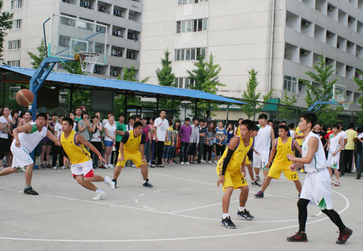 第二轮总冠军赛,女子比赛由化材学院对阵政法学院,由于双方力量悬殊,最终政法学院以39:13轻松摘得总冠军。男子比赛由生命科学学院迎战经管学院,由于双方实力相当,各具风格,比赛打得异常激烈。双方队员均发挥出了很高的技战术水平,巧妙的配合、准确的投篮、大胆的穿插与突破,不时引来阵阵掌声和喝彩声。赛到第四节最后1分多钟时,双方战成32平,一次暂停后,生科院队员连续犯规,经管学院通过两次罚球,把比分领先。最终生命科学学院以33:36惜败,经管学院捧得总冠军杯。