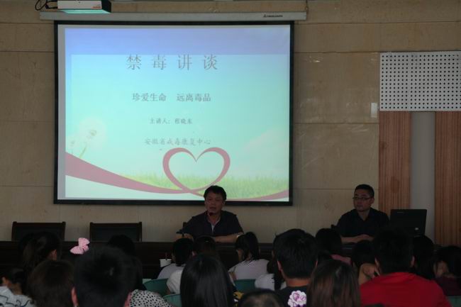 根据学院安全教育活动的安排,2012年5月9下午,在437ccm必赢国际版二楼多功能厅,由安徽省南湖强制戒毒所程晓东副所长给437ccm必赢国际版学生上一堂题为《珍爱生命,远离毒品》禁毒讲谈。