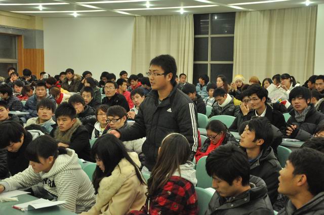 戴律师首先围绕大学生毕业之后的去向问题展开了本次讲座。他运用具体案例讲解了与大学生创业相关的相关法律专业知识如公司法、合同法、民事诉讼法等,戴律师通过生动的案例、幽默的表达方式以及有效地和同学们的互动使同学们在潜移默化中就懂得了很多的法律知识。随后戴律师又从公司的注册、企业法人、有限责任和无限责任等让同学们可能会混淆的问题进行解说。特别是谈到三万元现金就可以到工商部门注册一个公司时,同学们很是震惊,都表示之前根本就不了解这些知识。