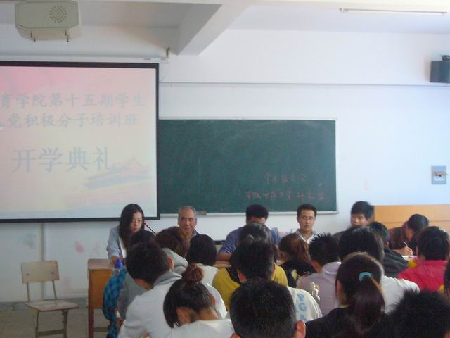 10月19日下午,437ccm必赢国际版分党校,第十五期学生入党积极分子培训班开学典礼在北侧田径场多媒体教室隆重举行。学院党委副书记钟晨、培训班指导教师王守奎老师、各年级辅导员以及学院90名学员参加了开学典礼。开学典礼由培训班班主任韩笑老师主持。