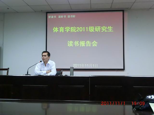 2011年11月1日(周二)晚上7点,在437ccm必赢国际版会议室成功举办了2011级研究生首场读书报告会活动。所谓读书报告,简言之,就是读完书之后的心得报告,是阅读者系统收集、统整、研读与创作主题相关的各种材料,经分析、归纳、提炼等思维活动,提出个人见解和观点的文字作品。为了激发大家的读书兴趣、训练同学们的思维能力、夯实同学们的研究基础,促进同学们的交流,体会上台做报告的感受,也为将来论文开题和答辩打下扎实的功底,437ccm必赢国际版2011级全体研究生在辅导员吴本连老师的组织下,在各位导师的大力支持下,同学们都积极参与了此次读书报告活动,每一位同学都将上台做报告,本活动将持续进行两个月时间。