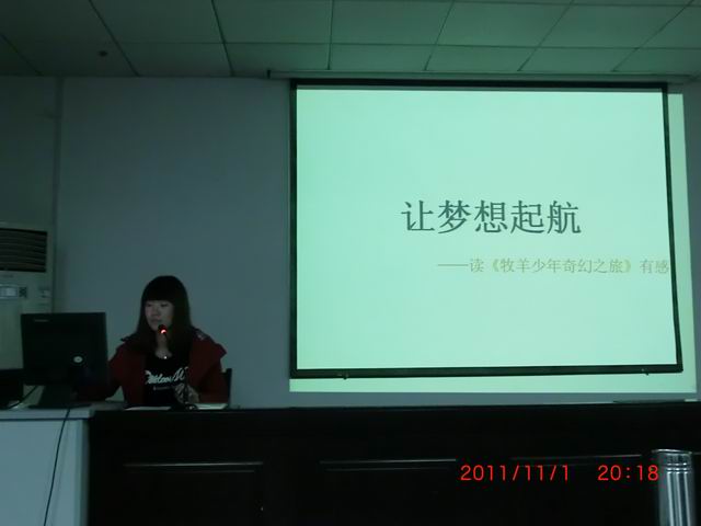 此次读书报告要求报告人在有限的时间里,通过幻灯片的形式,呈现书籍的名称、作者简介、内容简介以及读后感等等。每位同学都根据自己的兴趣方向,从自身独到的心理感受出发,声情并茂地展露了不同的思想领悟。在每位同学报告后,辅导员吴老师都对其进行了言简意赅的点评,肯定优点、指出不足、帮助提高。令在场的每一位同学都获益匪浅,首场读书报告会不仅取得了预期的效果,还吸引了部分大四的学生到场旁听。