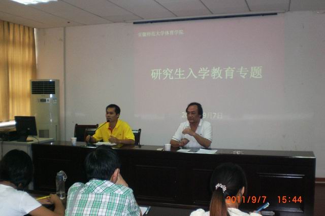 了贯彻校研工部〔2011〕35号文件精神,做好研究生新生入学教育工作。9月7日下午,在437ccm必赢国际版行政楼二楼会议室举行了一次入学教育专题活动。此次活动邀请了导师代表左新荣教授以及研二、研三的优秀同学代表,该专题活动由2011级研究生辅导员吴本连博士主持。