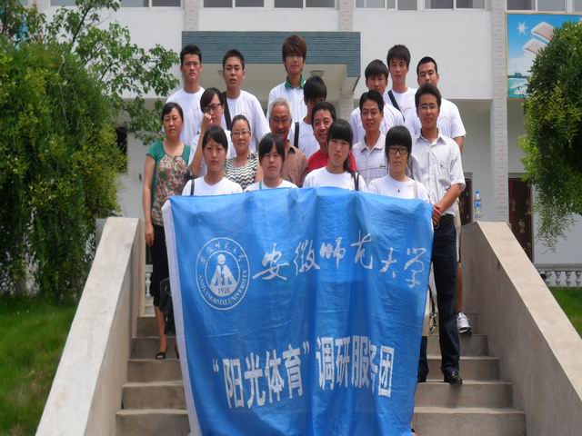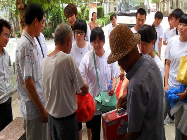 7月4日下午4点,安师大赴淮南“阳光体育”夏令营的队员们怀着一颗感恩的心,带着精挑细选的礼品,踏着凹凸不平的小巷,慰问了淮南市八公山区的敬老院孤寡老人。