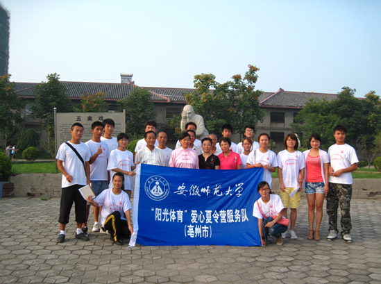 五禽戏是东汉名医华佗根据动物的生活习性,象形取义,结合传统中医学的治病与养生原理所编成的一套健身气功功法,在中国民间广为流传。为了进一步了解五禽戏,弘扬中华文化的博大精深,8月11日至8月13日,安师大437ccm必赢国际版赴亳州市建安中学“阳光体育”爱心夏令营团队,群策群力,经过周密策划组建,开展“五禽戏的推广和发展情况”的调研活动。