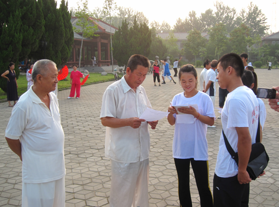 志愿者每天早晨5点多出发赶往目的地,对学习者进行采访。据亳州市武功协会会长王峰介绍,借国家推广五禽戏的东风五禽戏的发展正呈空前高涨之势全市现有五禽戏会员俱乐部会员十二万人,全市范围内现有五十多万人练习五禽戏,国内外来亳州学习五禽戏的人络绎不绝,先后有德中友好协会考察团来亳州考察学习五禽戏,日本商会学习五禽戏等。每年近千名外籍人士慕名考察学习,大大推动了五禽戏的推广速度和领域。