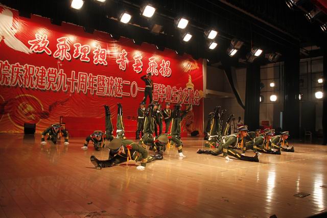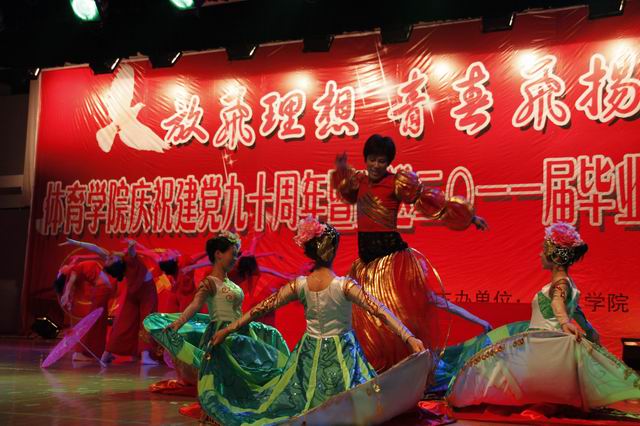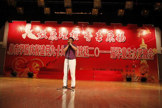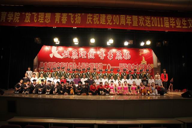 “同窗四载情深意重别情依依实难舍,壮志雄心乘风破浪辽阔大地腾鲲鹏”。6月12日晚,花津校区大礼堂座无虚席,人头攒动。437ccm必赢国际版“放飞理想 青春飞扬”庆祝建党九十周年暨欢送2011届毕业生文艺晚会在此隆重举行。安徽省体育卫生协会秘书长陈钦、副校长王先俊、安徽省江南片各高校体育部主任、学校各部门领导、兄弟学院领导及学院师生代表1000余人观看了本场晚会。