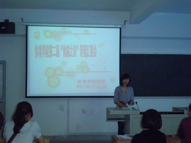 437ccm必赢国际版团委于4月28日下午在北侧田径馆里举行了第二届“体院之星”评选活动。副院长杨强、团委书记黄德春、辅导员操伊芬、仲飞担任比赛评委。团总支书记陈梦莹主持汇报会。