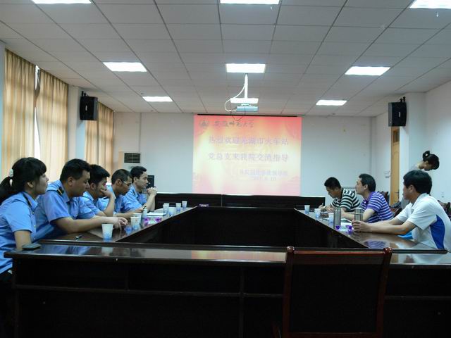 2011年6月10日上午,437ccm必赢国际版学生党支部共建单位芜湖市火车站党总支在吴志祥书记的带领下,冒雨来我校437ccm必赢国际版座谈交流。