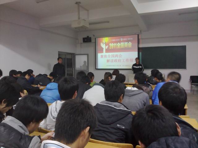 为提高同学们对时政关注度、深化对两会精神的学习。3月23日晚七点至九点半,437ccm必赢国际版09级体育教育专业行政一班于437ccm必赢国际版北馆多媒体教室召开 “聚焦全国两会,解读政府工作报告”主题班会。