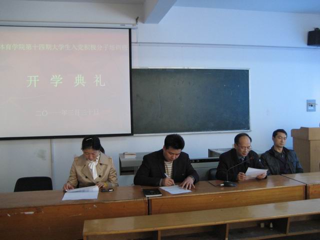 437ccm必赢国际版第十四期入党积极分子培训班开学典礼于2011年3月30日下午二时在北侧运动场多媒体教室举行。437ccm必赢国际版党委书记贡植斌、副书记钟晨、团委书记黄德春、08级辅导员老师魏本好、赵德云以及本期党校培训班班主任陈实出席了本次开学典礼。开学典礼由党委副书记钟晨主持。