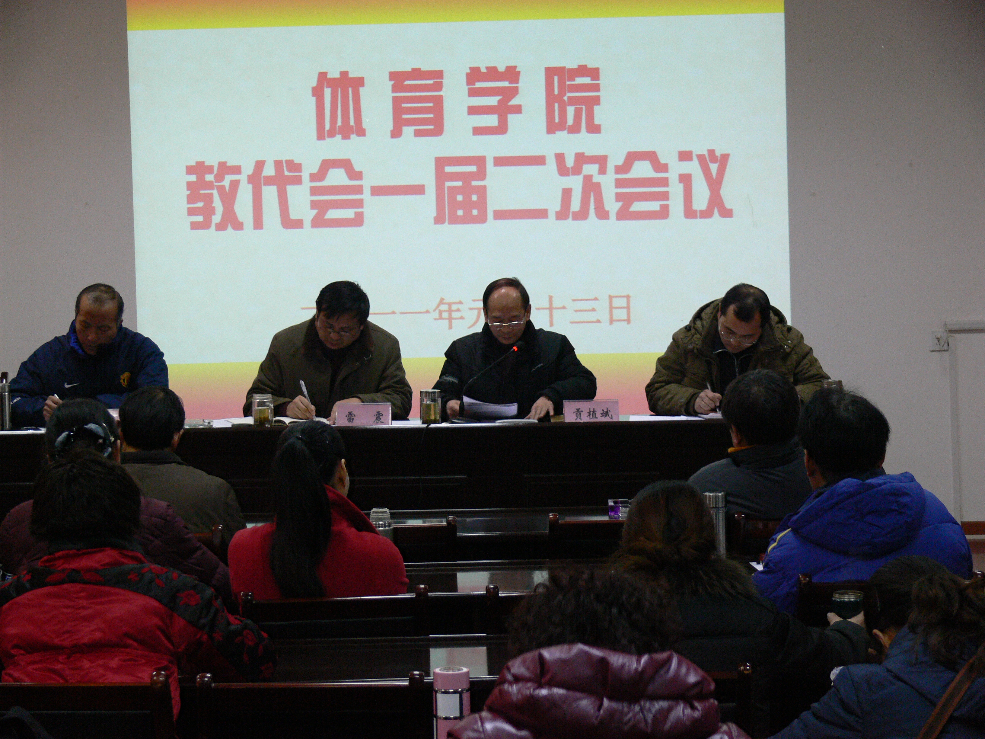 2011年1月13日下午,437ccm必赢国际版召开教职工代表大会一届二次会议,大会由院党委书记、院教代会执委会主任贡植斌主持。院教代会执委会副主任杨强、张国棣 出席会议并在主席台就坐。院长雷震教授作了学院2010年度工作报告,全面总结一年来的工作,提出2011年的工作设想;杨强副院长作了学院2010年度财务工作报告,在对学院财务收支分析的基础上,提出了学院2011年度财务管理的意见和建议。会议还就2010年度校内津贴学院的分配方案进行了通报。