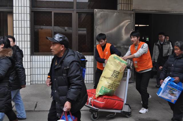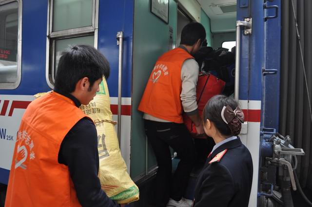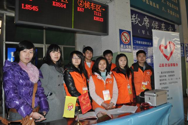 候车室在哪儿?卫生间在哪儿?要改签、退票去哪儿?志愿者是不少旅客的“指南针”。帮助旅客查找车次,搬运行李,对老、弱、病、残等重点乘客全程陪同。虽然还是寒冬,但是队员们的脸上无不挂满了汗珠。在进站口的志愿服务台,志愿者们专门准备了针线、创可贴、红药水、纱布等物品免费提供给需要的乘客。为了更好的方便乘客,志愿台上还备有一本《重点乘客预约登记表》,需要帮助的乘客在进行电话或当面登记预约后,在预定的时间志愿者们将为他们进行针对性的帮助。