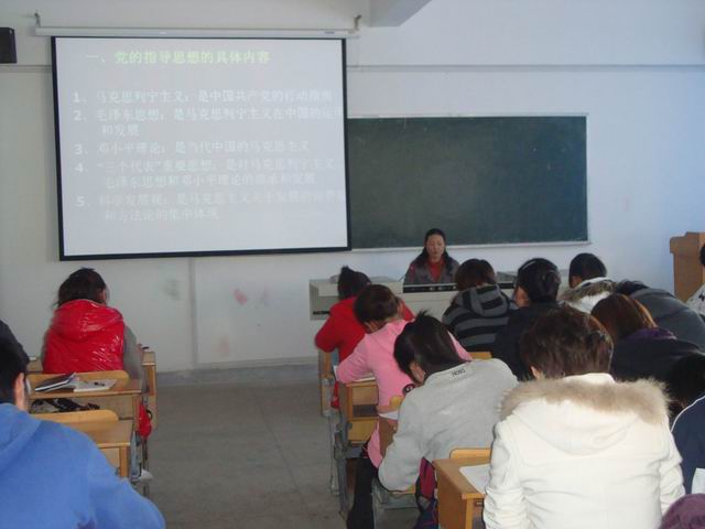 2010年12月1日下午14时,校党委组织部副部长余大芹在北侧多媒体教室为437ccm必赢国际版第十三期党校培训班的学员们就党的指导思想等内容进行了授课。