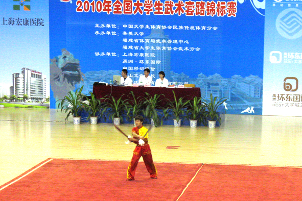 2010年10月28日至31日,2010全国大学生武术套路锦标赛在福建省集美大学举行,来自全国48所高校近500名大学生运动员参加了角逐。我校武术队获得了3块金牌、1块银牌、2块铜牌、四至八名5个的喜人成绩。