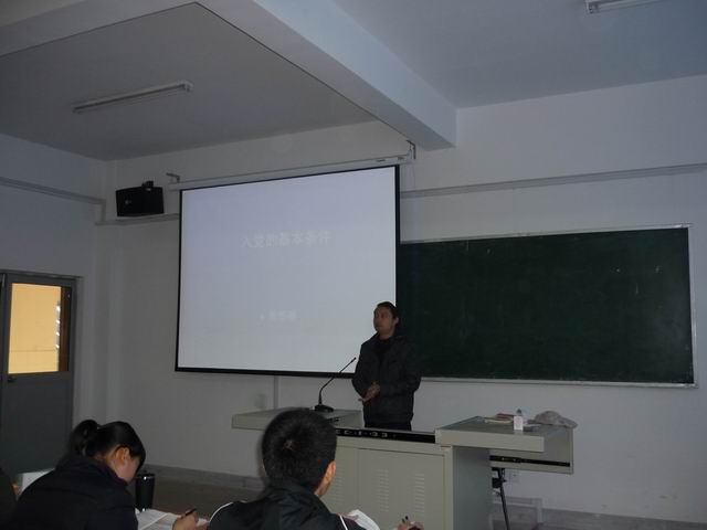 黄书记由浅入深、生动形象的教学赢得了学员们的阵阵掌声。他不仅介绍入党条件,还教育并希望学员们用哲学的方法思考今后的学习和工作,激励学员们尽早加入党的队伍!