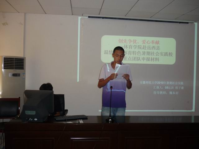 汇报会上,5支校级重点团队、7支院级重点团队按抽签顺序依次上台通过PPT展示的形式分别从实践活动前期准备、活动开展、社会效应、总结交流等方面汇报了各自的暑期社会实践活动开展情况。437ccm必赢国际版赴黄山阳光体育夏令营实践队眼界开阔;“挑战小勇士”创业团队视角前沿;赴岳西县“温情阳光体育”社会实践团爱心奉献,播撒温情;赴宣城五星乡五四爱心学校体育夏令营实践团队调研深入,工作细致。展示不仅凸显了体院学子积极认知社会的良好意识与专业特色,也使参加的同学从中汲取了宝贵的经验。