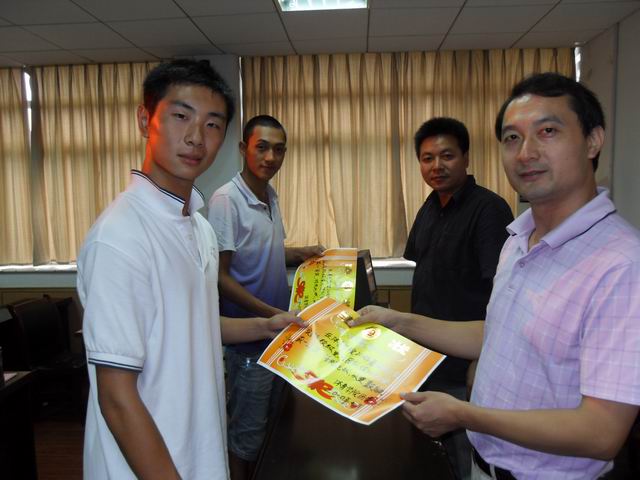 最后,院团委书记黄德春根据现场评分结果宣布了2010年437ccm必赢国际版暑期社会实践活动优秀重点团队一、二、三等名单。现场评委为各奖项获得者颁发了奖状和荣誉证书,并与获奖团队代表合影留念。