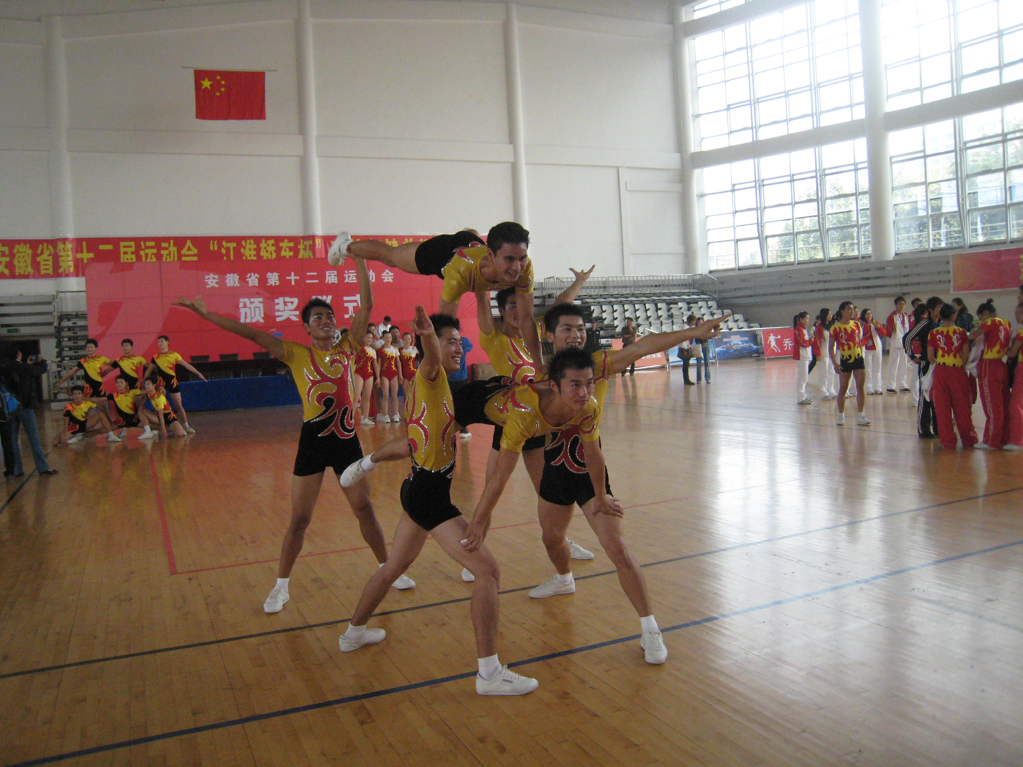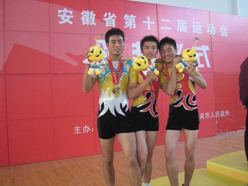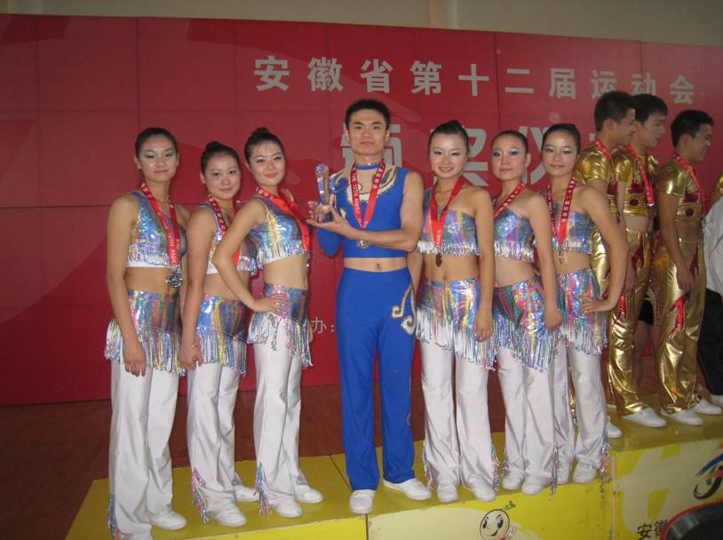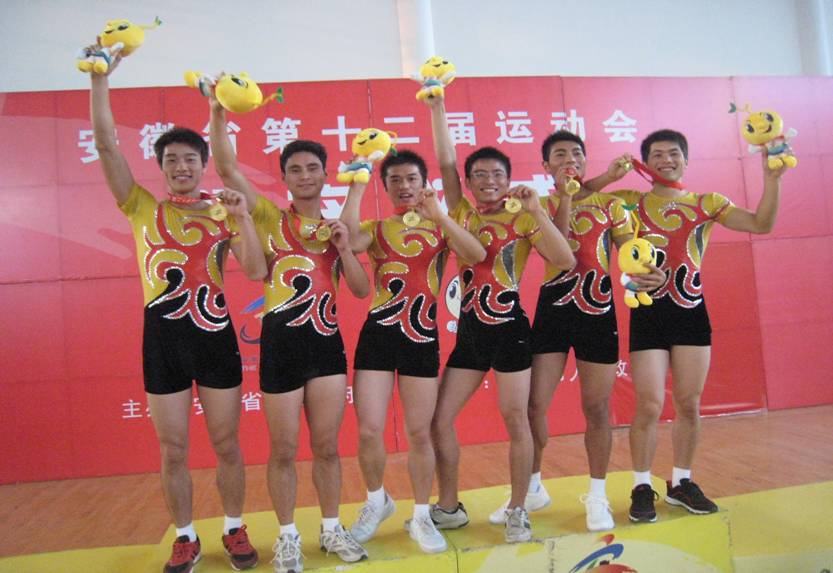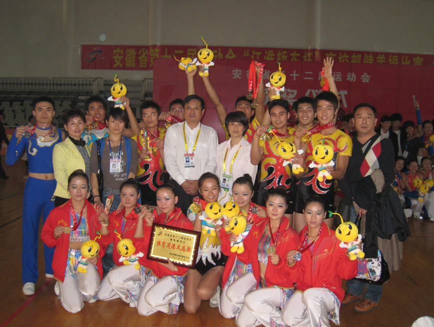 10月16日至21日,安徽省第十二届运动会高校组健美操比赛在淮南体育文化中心训练馆举行。来自全省25所高校的27支代表队参加了角逐。我校代表队在领队贡植斌、雷震和教练员王艺兰、陈建霞、郝利玲、刘徐军的带领下,分别参加了竞技和健身两个组别的十个单项和二个团体的比赛。队员们在比赛中以高超的技能、出色的表现征服了裁判,取得了竞技组团体总分第一和健身组团体总分第二的的优异成绩。并将竞技健美操女子单人、混合双人、集体六人、团体以及健身健美操混合双人共五枚金牌收入囊中,同时被组委会授予“体育道德风尚奖”,为我校赢得了荣誉。