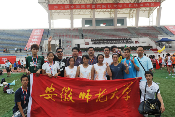 7月25日,第五届全国高等师范院校大学生田径运动会在四川师范大学举行,全国共59所院校800余名运动员参赛。我校由437ccm必赢国际版院长雷震教授领队,吴峰、王俊智、吴爱兵为教练,率领10名运动员参加了本次比赛。在代表团全体人员的共同努力下,经过4天的拼搏,取得了可喜的成绩,获得了男子十项全能银牌,男子200米、女子3000米、男子跳高、女子七项全能和男子铅球铜牌,女子200米、女子400米第四名,男子200米、女子800米、女子1500米和女子4×400米第六名,女子4×100米第七名,男子100米第八名。