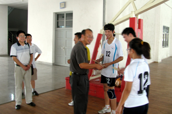 在训练场地,院领导和学生运动员亲切交谈,希望大家服从学校的统一安排,在教练的带领下刻苦训练,在比赛中赛出水平、赛出风格,为师大增添光彩。随后,胡培亮书记还询问了运动员的吃住情况,并代表学院向运动员送去了慰问金。胡培亮一行,还与教练进行了交流,并代表学院向他们表示感谢。