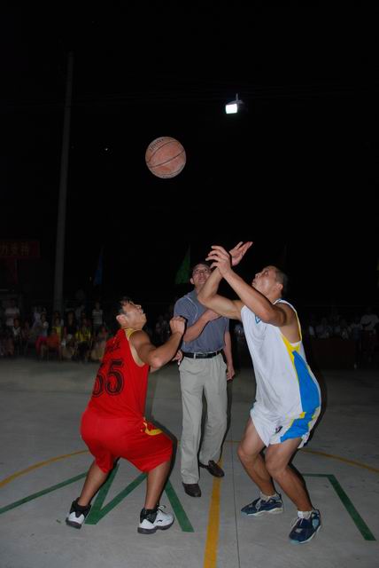 晚上8:00,在五星乡灯光球场,校长王伦亲自开球并兴致勃勃的观看了由437ccm必赢国际版篮球国家级裁判何也明执裁的第二届“朝农杯”篮球友谊赛,并与全体队员合影留念。