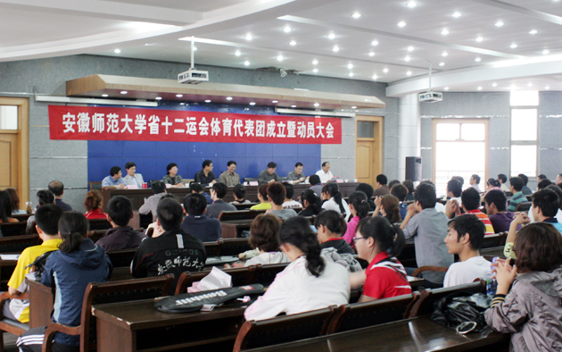 bwin必赢线路检测参加安徽省第12届运动会体育代表团成立暨动员大会于6月9日下午在花津校区会议中心第一会议室隆重举行。党委副书记、校长王伦出席大会并作重要讲话;校办主任马三保宣布了代表团人员组成;437ccm必赢国际版院长雷震就《bwin必赢线路检测运动代表队管理办法》(试行)进行了解读。