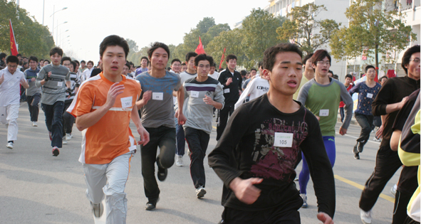 为了响应教育部第三届全国亿万学生阳光体育冬季长跑活动,进一步推动我校“阳光体育运动”的开展,增强学生体质,丰富校园体育文化生活,学校于2009年12月30日下午在花津校区举行了迎新年长跑比赛。