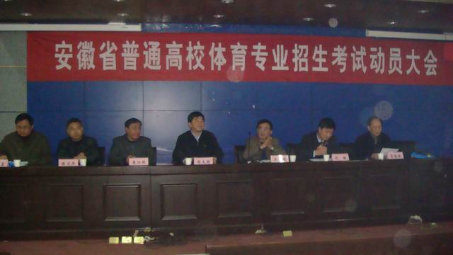 2010年4月11日下午安徽省2010年普通高校体育专业招生考试动员大会在bwin必赢线路检测花津校区会议中心隆重举行,出席大会的有安徽省教育招生考试院院长郑大明、副院长沈涛、bwin必赢线路检测副校长王先俊、纪委副书记陈文兵、437ccm必赢国际版书记贡植斌、院长雷震等领导,以及校招生办、纪检部门和437ccm必赢国际版全体教职工。大会由437ccm必赢国际版书记贡植斌主持。