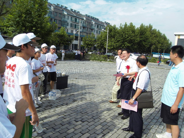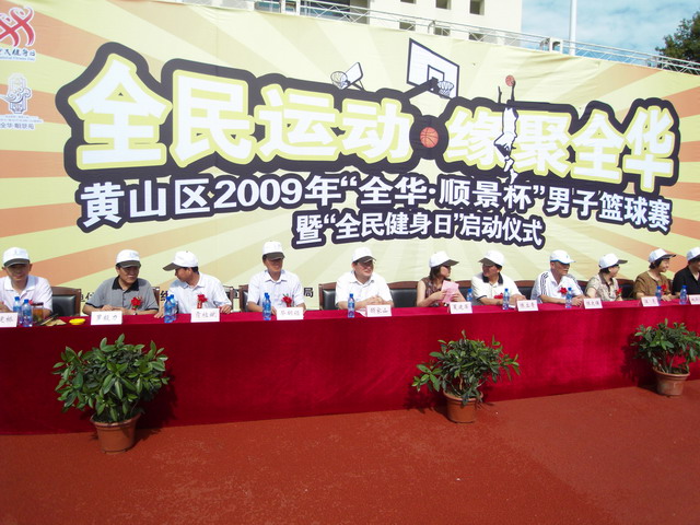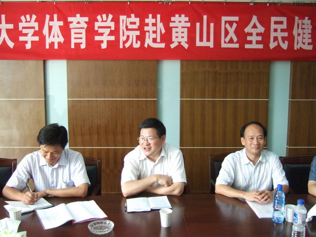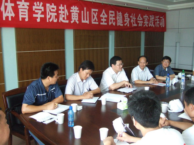 8月8日,437ccm必赢国际版校级重点团队----赴黄山区“阳光体育调研服务团队” 暑期实践活动结合我国首个全民健身日正式拉开帷幕,校党委副书记顾家山在校团委书记毕明福、校学生处副处长傅绪中、437ccm必赢国际版党委书记贡植斌、副书记钟晨、副院长杨强、国家级篮球裁判何也明的陪同下,冒着高温酷暑来到黄山区亲切慰问参加暑期社会实践活动的指导老师和同学,并参加了黄山区首个全民健身日启动仪式。省体育局篮球中心主任陈文保、黄山市体育局副局长夏建萍、区委常委组织部长陈立青、区委常委宣传部长汪亮、区人大常委会副主任姚羚泳、副区长曹恒凤等领导也一同参加了启动仪式。