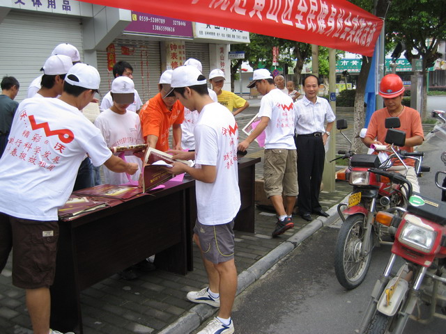 为配合黄山区首个全民健身活动,在启动仪式前,团队同学在黄德春老师和陈实老师的带领下开展了全民健身义务宣传活动,共发放近2000份全民健身宣传单,为在锻炼中遇到一系列问题的群众进行解答,并帮助他们制定合理有效的健身计划,受到广大群众的一致好评,贡书记亲临现场指导活动。