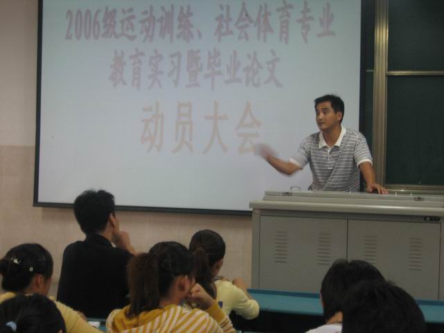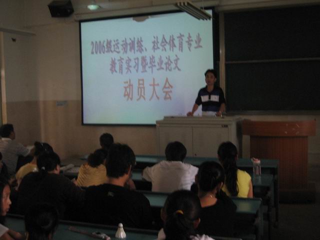 9月16日下午两点半,437ccm必赢国际版06级运动训练和社会体育专业在2010201教室召开了本科毕业生论文设计暨专业实习动员大会。
