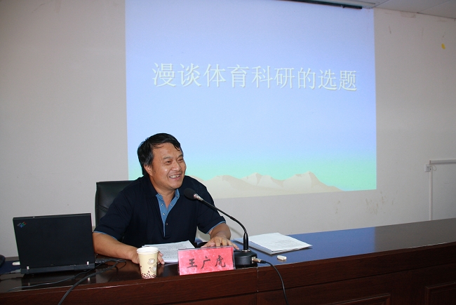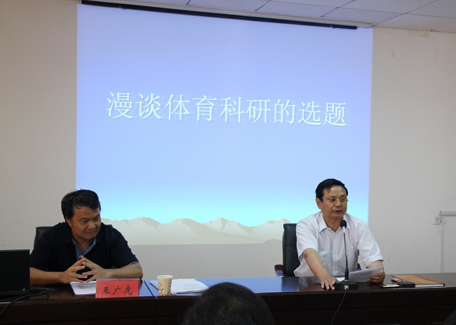 王广虎教授着重从“原创性选题”方面讲解了科研选题的思路、方法和技巧。并着重从社会生活的变化、体育实践的变革、体育的交叉领域、体育科学的基础学科、国家政策的调整、重大事件或反常事件以及立足专业角度等七个方面,结合他自己的科研工作经验,分析了如何从体育实践中发现问题,分析问题,理清思路,确定研究课题。王广虎教授强调,在科研选题时,要善于跳出体育看体育,要善于在现有课题研究中发现新的课题,并在连续性的研究中逐步形成自己的研究方向。王广虎教授渊博精彩风趣的报告赢得了现场老师和学生的阵阵掌声。(文 图/娄道舰)