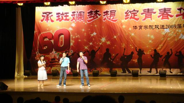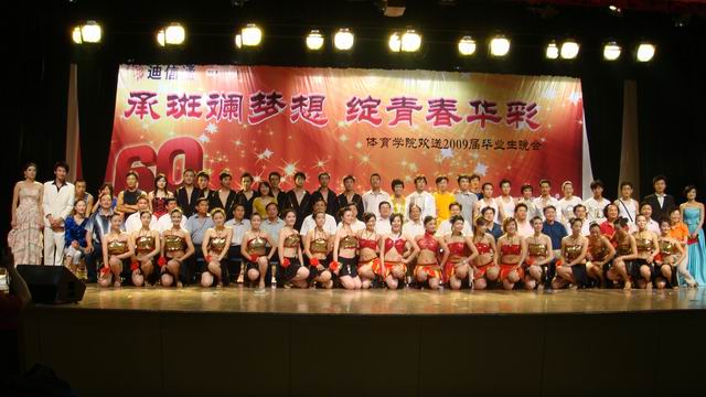 晚会以一首beyond的《真的爱你》拉开帷幕,这首经典的老歌瞬间将整个礼堂的气氛带动起来,接着是健美操《奔》将妩媚的印度舞与激情的现代健美操完美结合,使整个会场内人声鼎沸。体院雷震院长秀了一段口琴独奏,真诚的祝愿毕业生们前程似锦,赢得了台下雷动般的掌声。体院团委书记同时也是09届毕业生的辅导员黄德春老师也登台为毕业生们送上最真诚的祝福,与两名同学一起演唱那首《祝你一路顺风》,台下的毕业生们也手拉着手,随着音乐的旋律舞动着双手,此情此景感人至深许多人都留下了感动的泪水。劲爆的街舞,柔美的拉丁舞、研究生表演的《健身风暴》、T台秀以及第四届“春之声”舞蹈大赛一等奖和二等奖的舞蹈《中国妈妈》和《狼图腾》的表演让台下观众享受了一场视觉上的盛宴。由王云辰同学编排的话剧《千年等一回》幽默中不乏感动,舞蹈与武术相互穿插,古今中外经典音乐相结合,让人时而捧腹大笑时而感动落泪,将整场气氛带动至高潮。